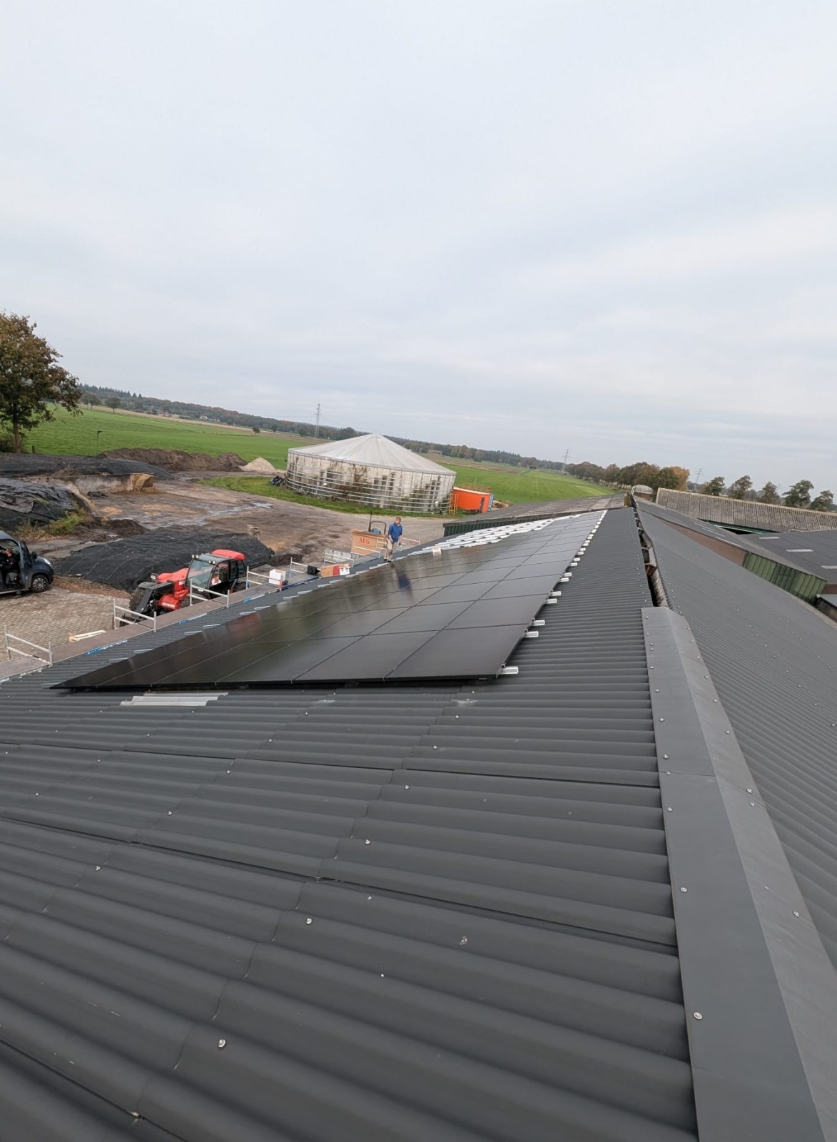 Voor deze boer hebben we een indrukwekkend project gerealiseerd: de installatie van 90 glas-glas zonnepanelen, aangesloten op twee SolarEdge-omvormers. Dit uitdagende werk hebben we in slechts drie dagen afgerond. Ondanks het hobbelige dak hebben we een strak systeem weten te plaatsen.